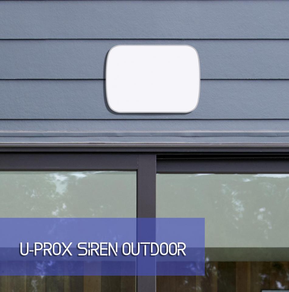 • U-Prox Outdoor Siren Harici Siren • Piezoelektrik dış mekan sireni. • 113 dB'ye kadar üç ses seviyesi. • 4 CR123A lityum pilli. • Gri-beyaz polikarbon kasa. • IP65